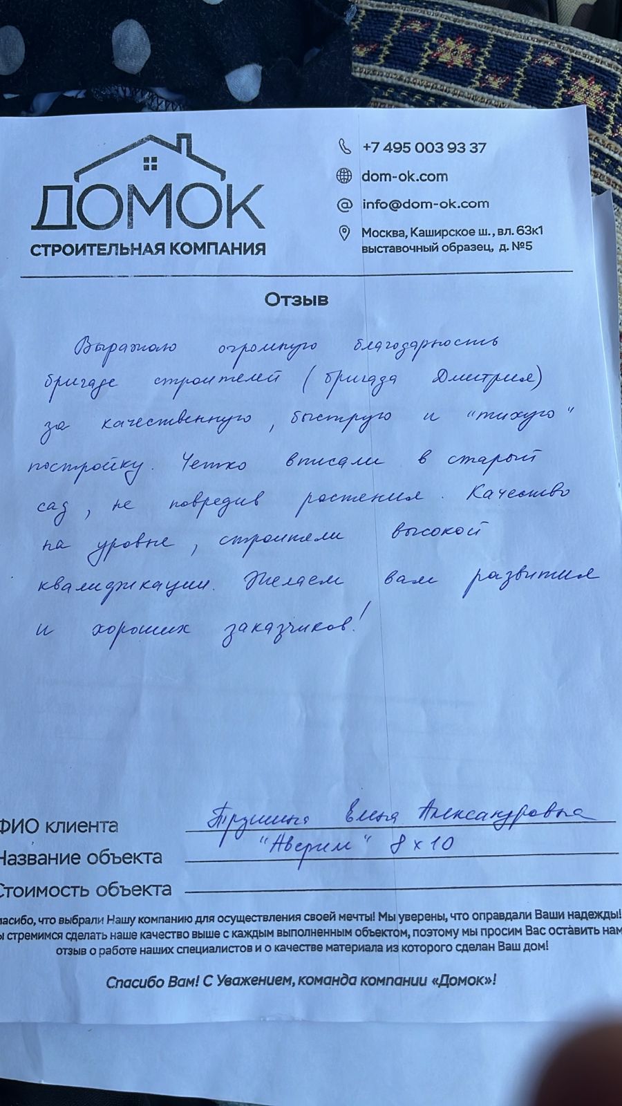 Сборка, доставка проживание бригады | Данные услуги входят в стоимость данной комплектации. |